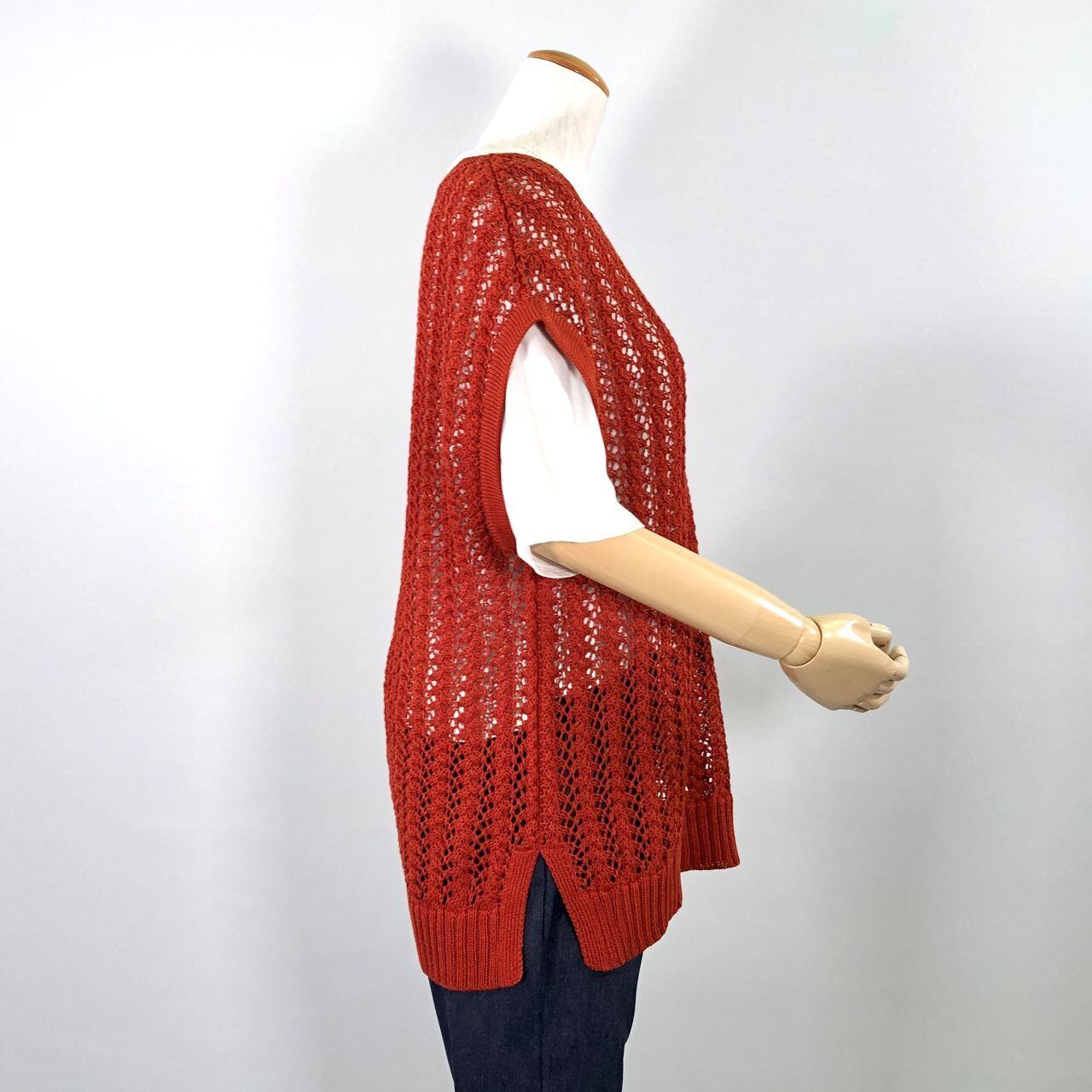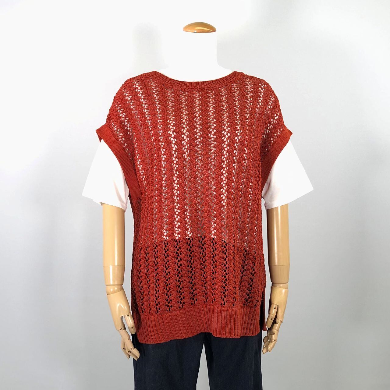 透かし編みのデザインベスト(レンガ) VTAV4123161091-65-9